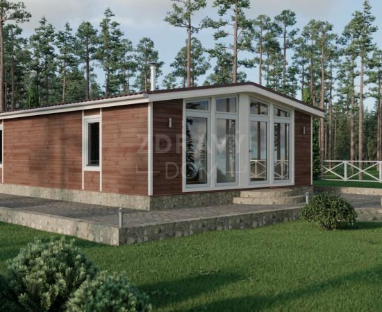 Modulový dom Viedeň dispozične riešený s 2 izbami , priestrannou kuchyňou s obývacou časťou a kúpeľňou. Počet modulov 2